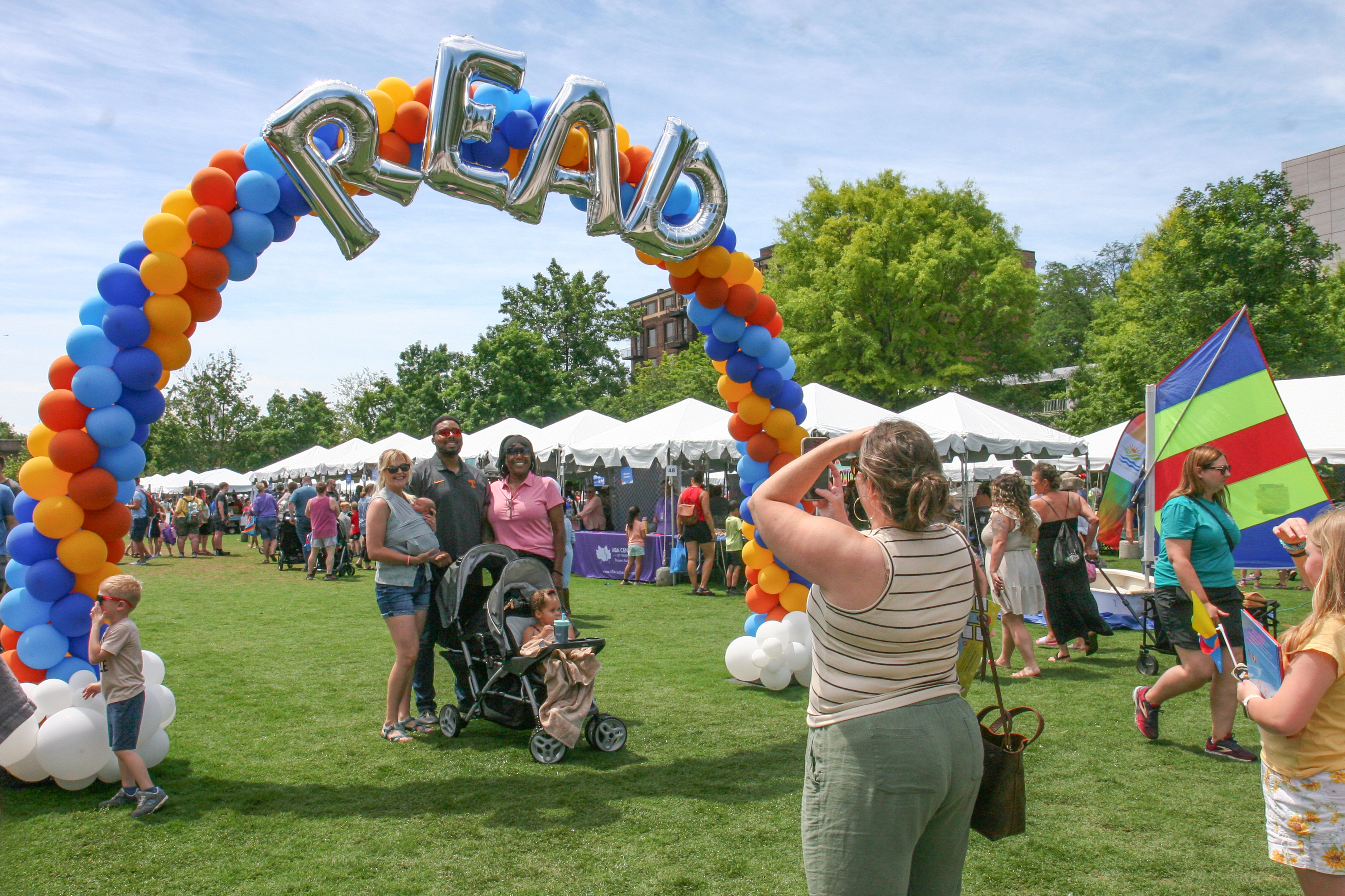 The 19th Children's Festival of Reading was held on Saturday, May 17 at World's Fair Park. Children flooded the Festival lawn to meet One Book Read City author, Elliott Smith, and get their book signed! Other artists who participated included Kevin Lewis, Jennifer Nielsen, Vivian Vande Velde, Aisha Saeed, Sarah Pirkle, the Knoxville Symphony Orchestra, the Hominy Mamas, Jodie Manross, Miss Lynn, Sparky & Rhonda Rucker, the Bearden Middle School Drumline, and more. Additionally, seventy community groups and vendors offered arts and crafts, and numerous activities to support a summer of literacy and learning.