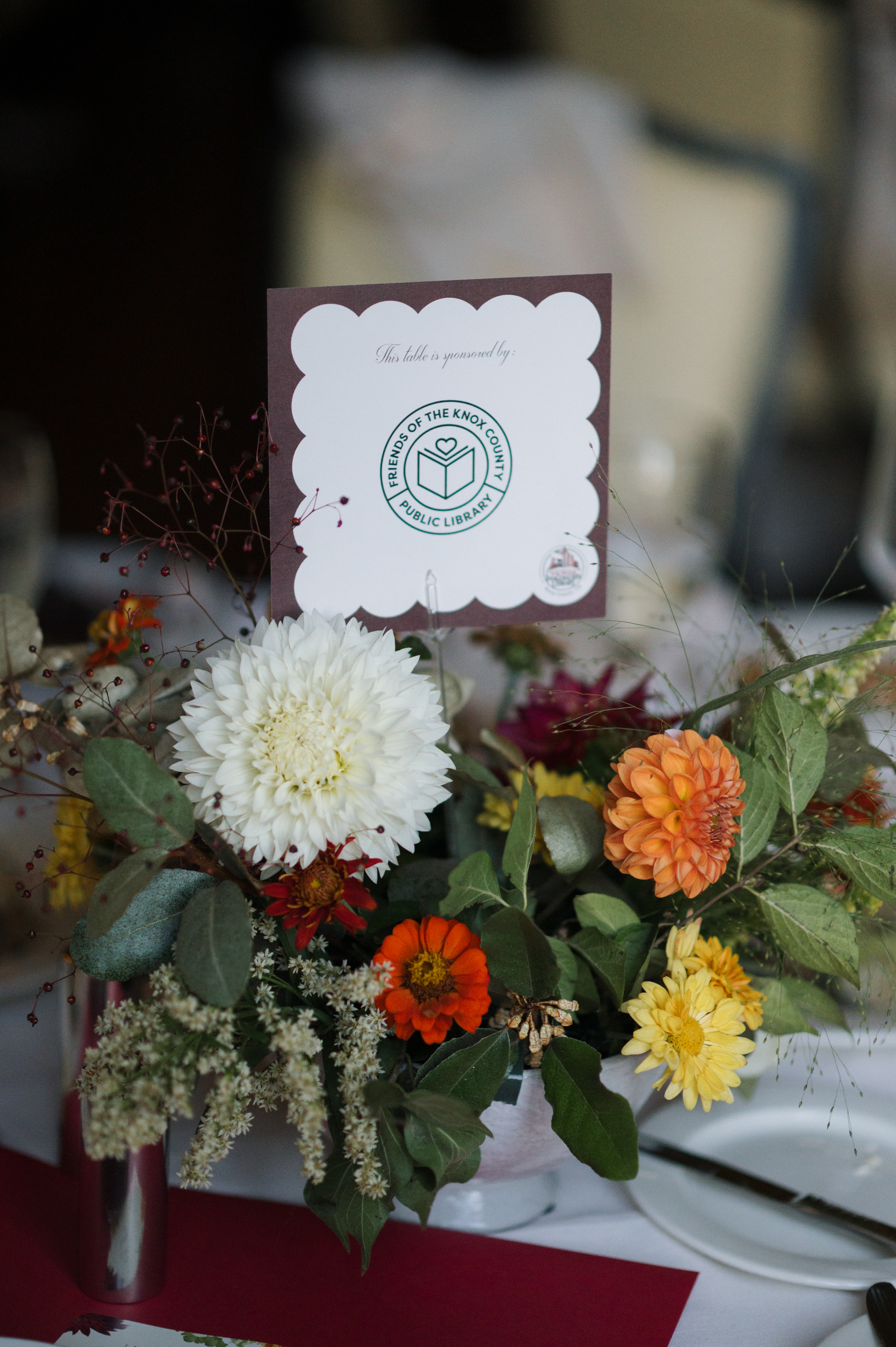 The flower arrangements were created by the talented Rainbow Roots Flower Farm. (Also, special thanks to Friends of the Knox County Public Library, who make Imagination Library of Knox County happen!)