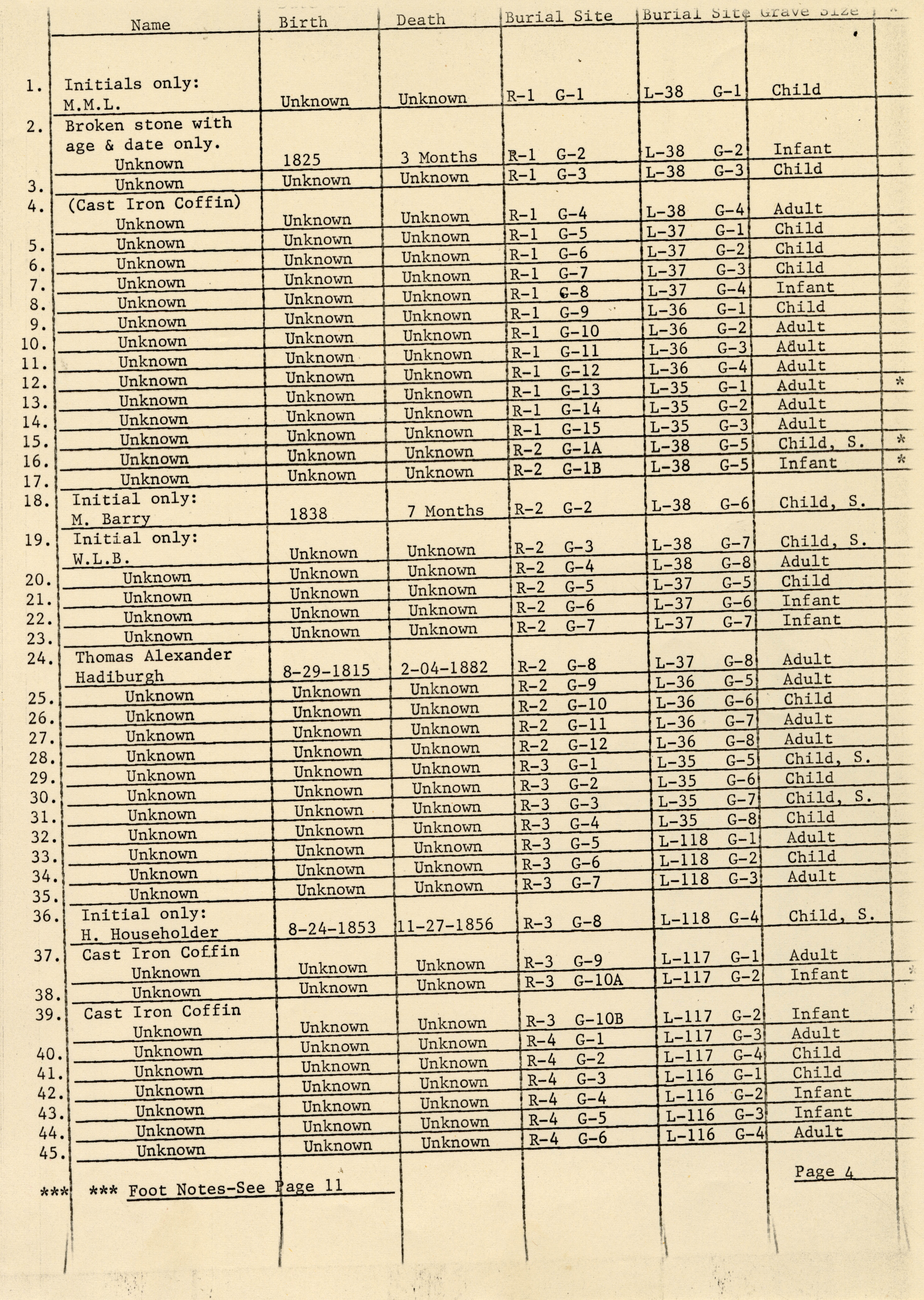 Below are the names of a few additional people buried in the East Hill Methodist Cemetery that do not appear in the official list created in 1967, but many more remain unidentified: