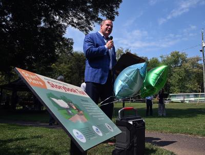Over 200 students from West View Elementary School made the trek to their neighborhood park to help cut the ribbon on the Library's inaugural Storybook Trail on Friday, Sept. 16.