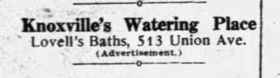 1913 Lovell’s Baths advertisement. (Knoxville Journal and Tribune)