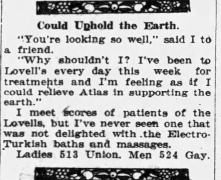 Lovell’s Turkish baths advertisement, 1905 (Knoxville Sentinel)
